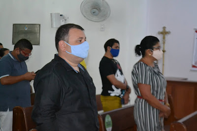 O prefeito Túlio Lemos esteve na Igreja Matriz de Nossa Senhora da Conceição na noite desta quarta-feira, 9, para assistir a missa celebrada pelo padre João Batista e rezar na celebração dos 145 anos de emancipação política de Macau.