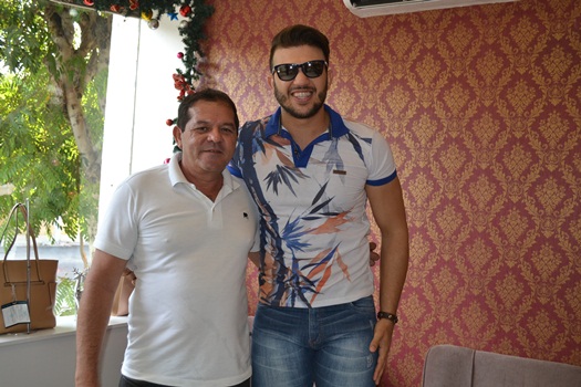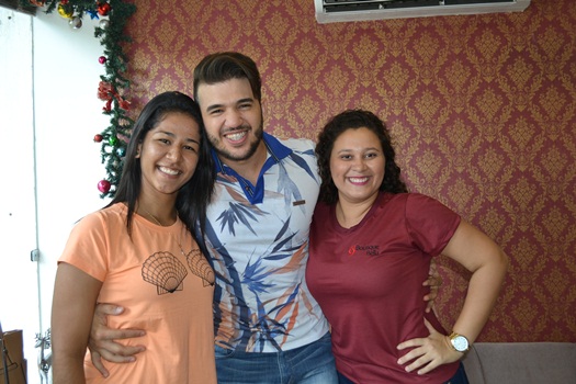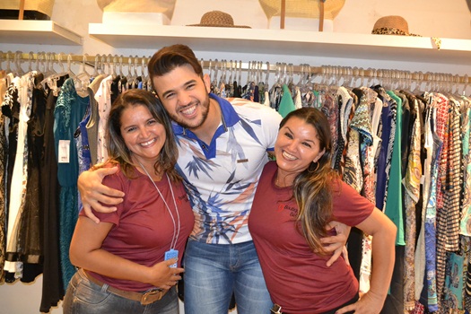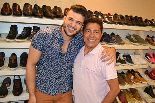 Os promoter Pereira e Valmir estiveram na loja acompanhando o cantor que também foi recepcionado pelo Padre João Batista.