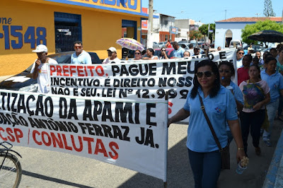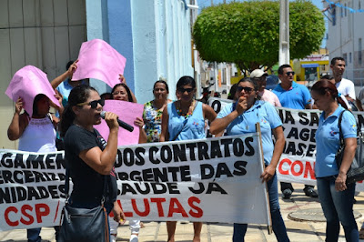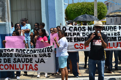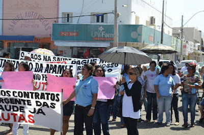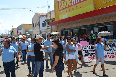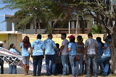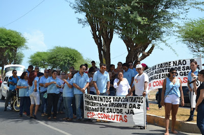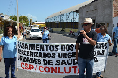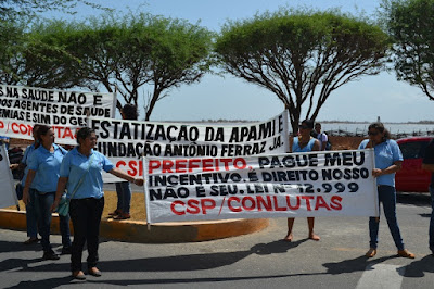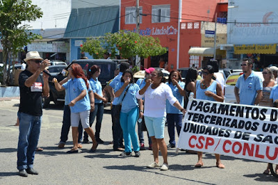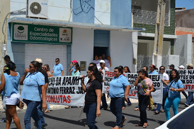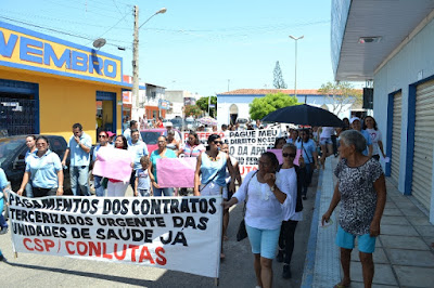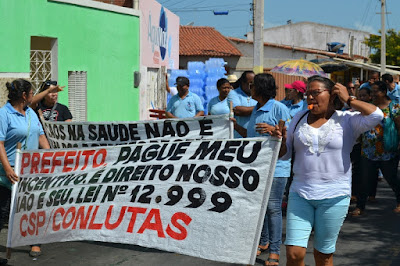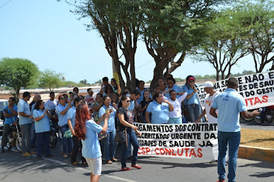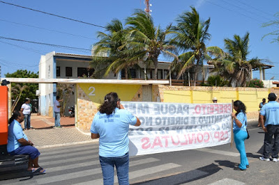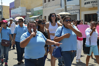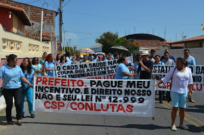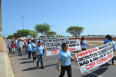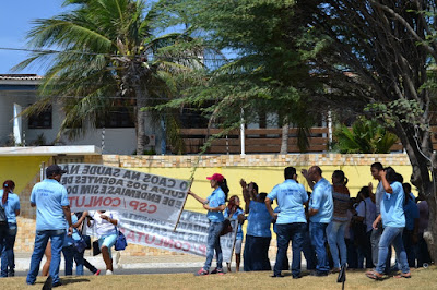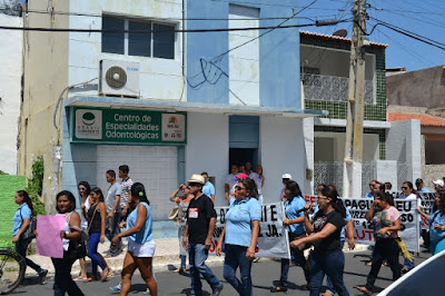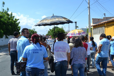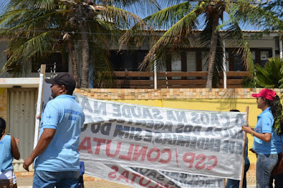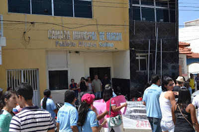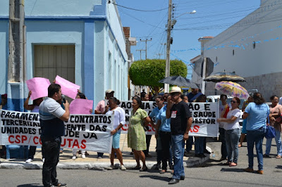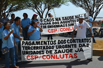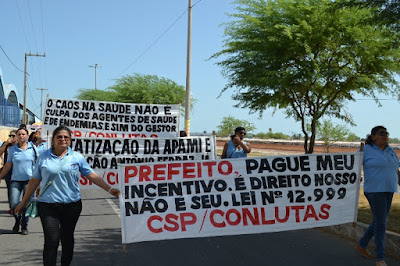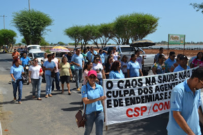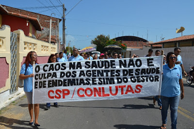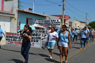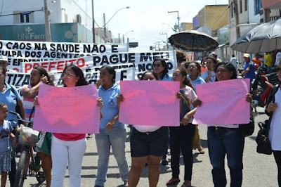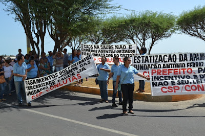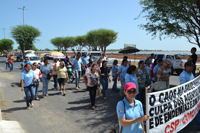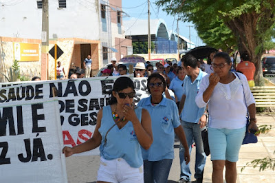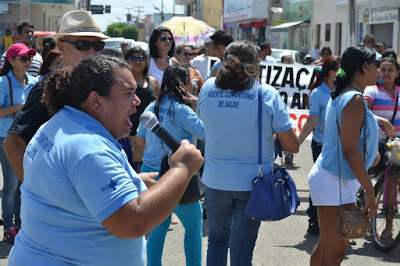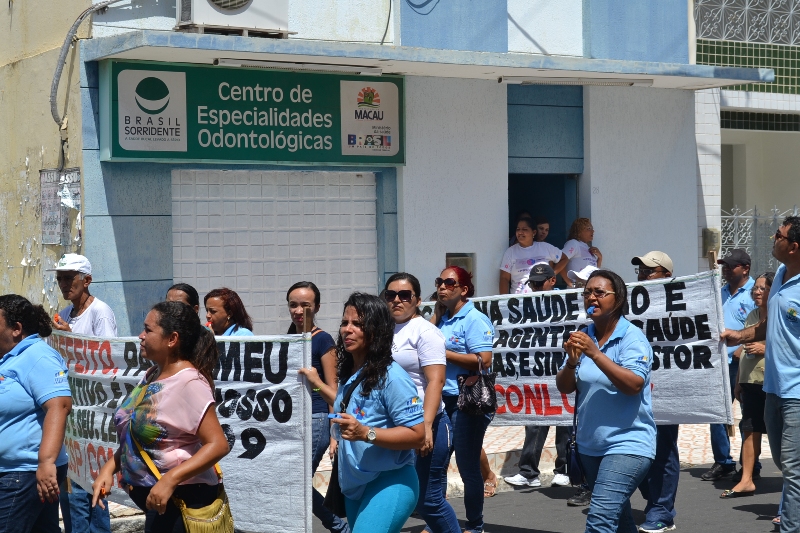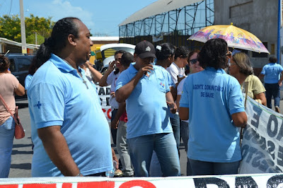 Mobilização dos agentes de saúde e endemias começou desda quadra do porto de são pedro até á secretaria de saúde onde foi a primeira parada do ato publico em defesa dos salários atrasados vários oradores usou da tribuna naquele momento pedindo providencias na questão de vários PSF, em todos setores de saúde faltando material e sem condições de trabalho os representantes da categoria chamou atenção de Diá e chamou atenção do Tiago segundo eles que a categoria estar sendo desrespeitada por parte de algumas pessoas que trabalha na saúde a cobrança maior dos agentes é o pagamento do 14 º salario da categoria a movimentação continuou passando na frente da sede do ministério publico seguindo para a Câmara municipal de macau na oportunidade a categoria pediu providencia aos vereadores sobre a saúde do município de Macau depois seguiu para a sede da prefeitura de Macau onde o prefeito Einstein Barbosa ouviu toda movimentação da categoria, mas quem saiu para receber a categoria foi o adjunto Tiago e só quem podia subir era uma comissão feita pela categoria mais alguns da categoria não recebeu Tiago muito satisfeito deve ele ter escutado muitas coisas dos manisfestantes segundo a categoria dizem que falta tudo nos PSF inclusive medico e programa do Glaucoma, o prefeito encontrasse neste momento com a categoria discutindo os problemas.