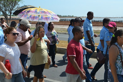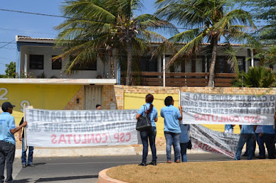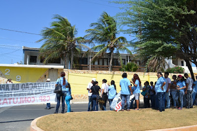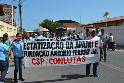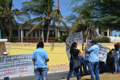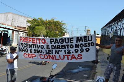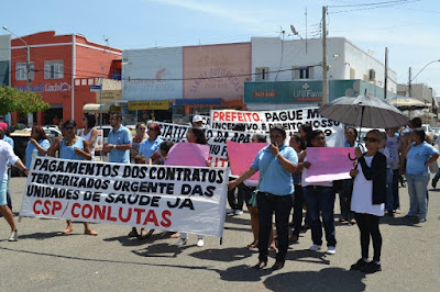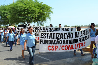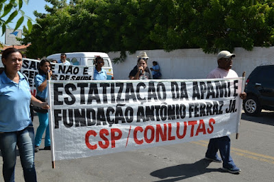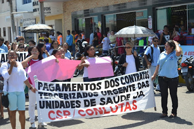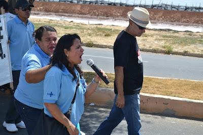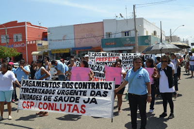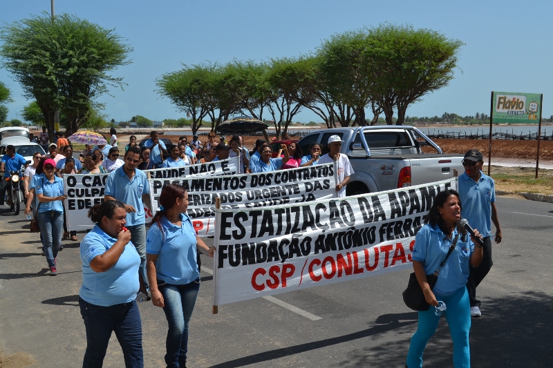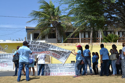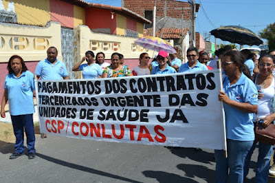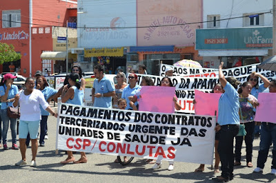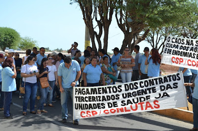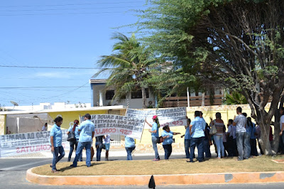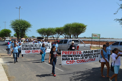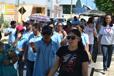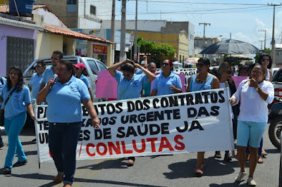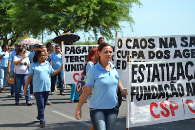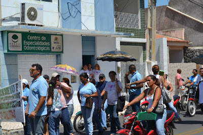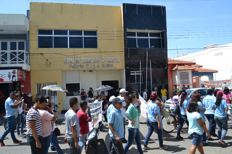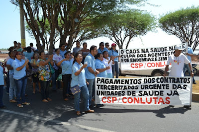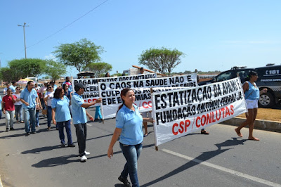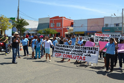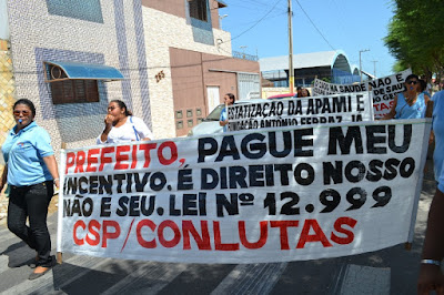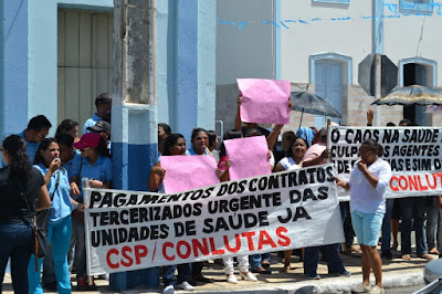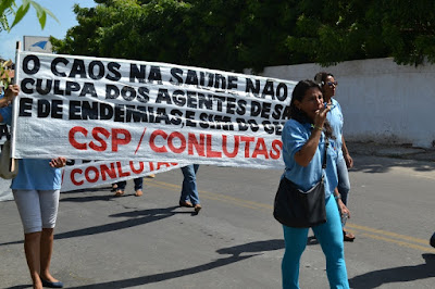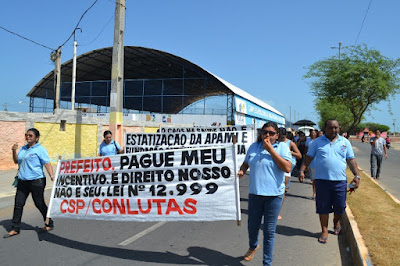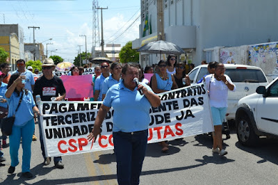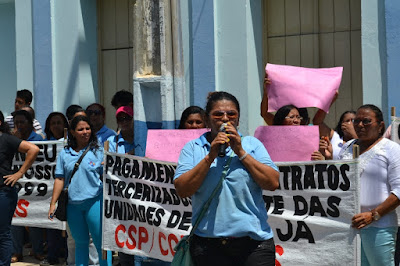 Mobilização dos agentes de saúde e endemias começou desda quadra do porto de são pedro até á secretaria de saúde onde foi a primeira parada do ato publico em defesa dos salários atrasados vários oradores usou da tribuna naquele momento pedindo providencias na questão de vários PSF, em todos setores de saúde faltando material e sem condições de trabalho os representantes da categoria chamou atenção de Diá e chamou atenção do Tiago segundo eles que a categoria estar sendo desrespeitada por parte de algumas pessoas que trabalha na saúde a cobrança maior dos agentes é o pagamento do 14 º salario da categoria a movimentação continuou passando na frente da sede do ministério publico seguindo para a Câmara municipal de macau na oportunidade a categoria pediu providencia aos vereadores sobre a saúde do município de Macau depois seguiu para a sede da prefeitura de Macau onde o prefeito Einstein Barbosa ouviu toda movimentação da categoria, mas quem saiu para receber a categoria foi o adjunto Tiago e só quem podia subir era uma comissão feita pela categoria mais alguns da categoria não recebeu Tiago muito satisfeito deve ele ter escutado muitas coisas dos manisfestantes segundo a categoria dizem que falta tudo nos PSF inclusive medico e programa do Glaucoma, o prefeito encontrasse neste momento com a categoria discutindo os problemas.