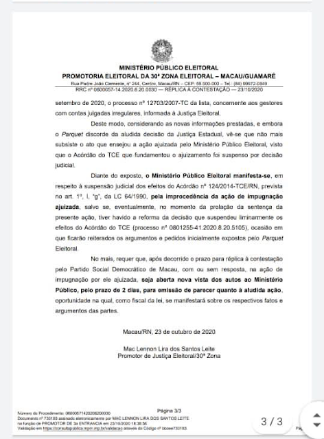 Após Zé Antônio realizar defesa com apresentação de todos os documentos que comprovam a legalidade do ato para o pedido de registro de candidatura, MPRN se pronuncia após conhecer o caso ponto a ponto e identificar à Justiça Eleitoral a improcedência da impugnação apresentada no Registro de Candidatura de José Antônio, reconhecendo a sua elegibilidade.