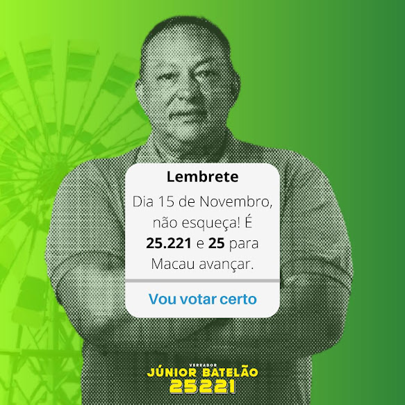 06 novembro de 2020 CONTAGEM REGRESSIVA COM JÚNIOR BATELÃO Ativem o lembrete, pois a contagem regressiva para vocês votarem certo começou! Dias melhores virão. Faltam (8+1) dias! #25221 #25