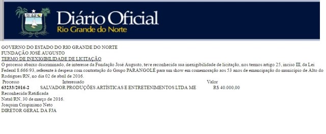 O Ministério Público do RN, na instância da Comarca de Pendências cobra agora a fatura do ex-prefeito de Alto do Rodrigues, Eider Medeiros, acusado por suposta promoção pessoal com o uso de show pago pelo Governo do Estado na festa de emancipação política do município, há cerca de quase dois meses.