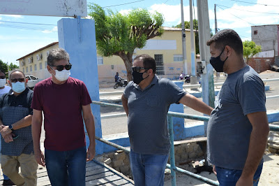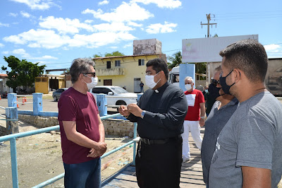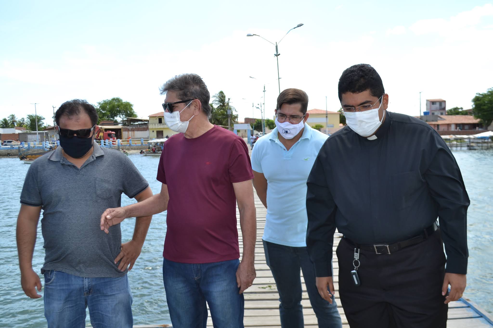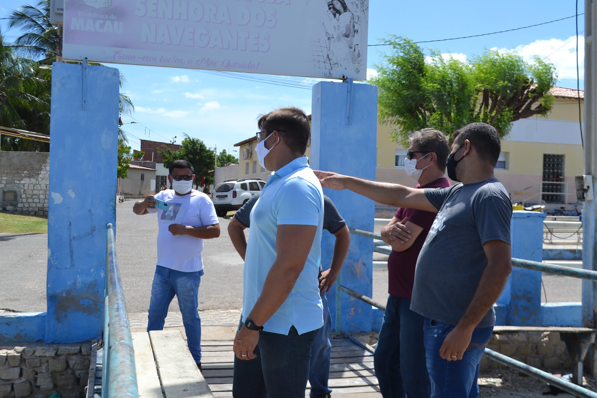 Ao lado do pároco local, João Batista Nunes Filho e do secretário municipal de Infraestrutura e o adjunto da pasta, Winston Paiva e Júlio César, respectivamente, o prefeito informou que até o dia 15 de agosto, os serviços estarão concluídos para a festa de Nossa Senhora dos Navegantes.
