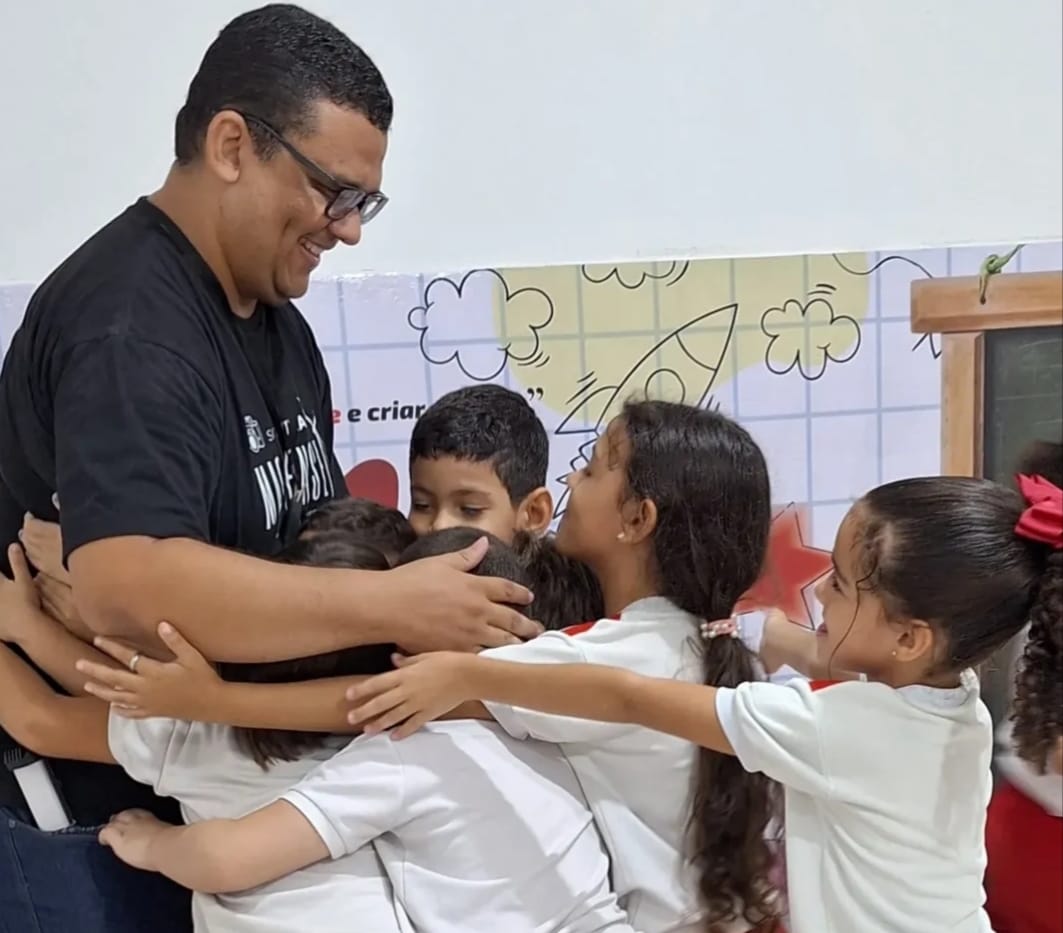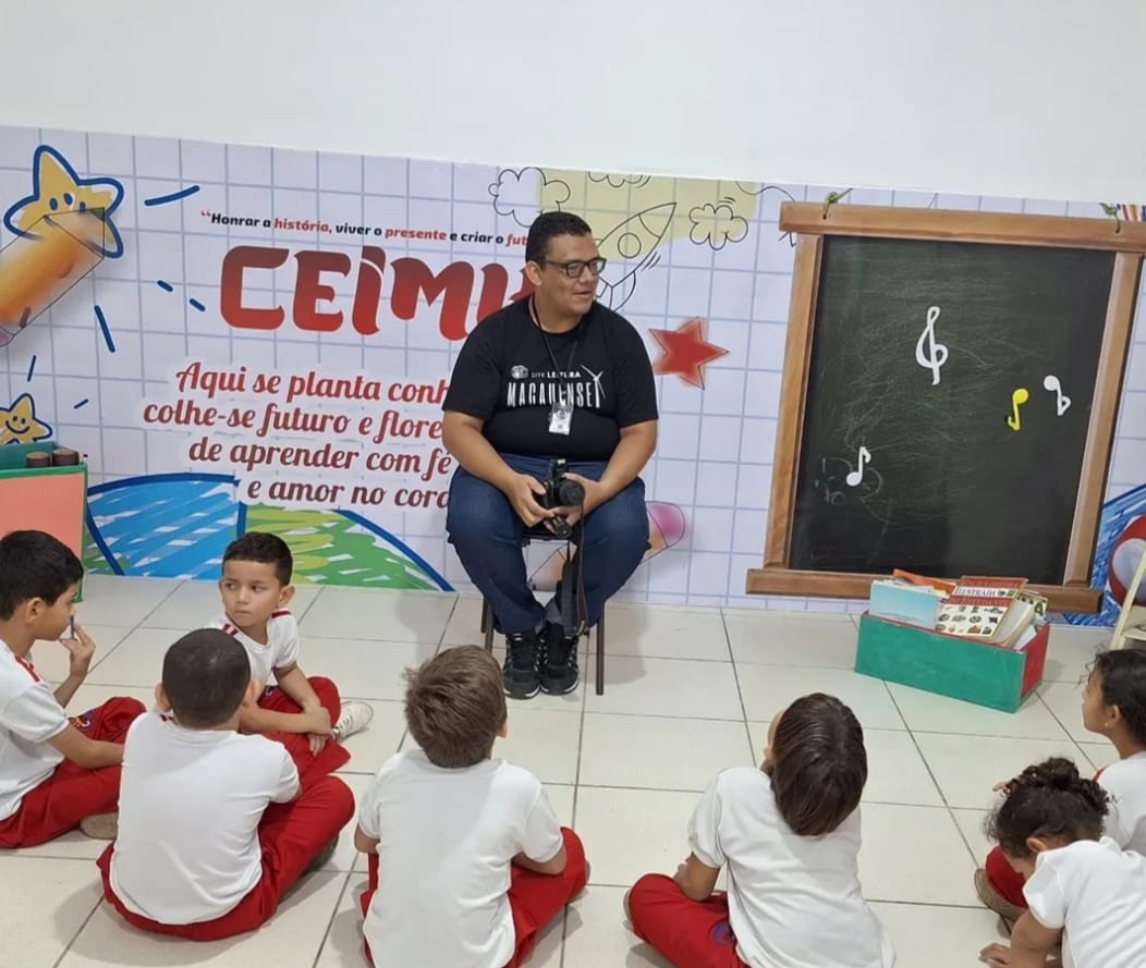 28 agosto de 2025 Henrique Carvalho participa de momento com os estudante para falar sobre o trabalho da imprensa na cidade