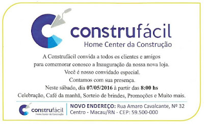Você é o nosso convidado especial para participar deste grande momento de alegria e celebração neste sábado a partir das 08:00 horas em nossa loja no centro da cidade na rua Amaro Cavalcante, nº 32.