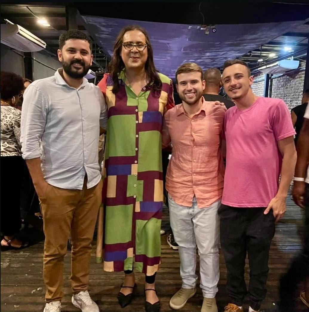 “Com a querida amiga @duda_salabert, prestigiando o evento “Com Axé e Coragem para Transformar o Brasil”, da vereadora de Niterói @bennybriolly. Um encontro potente que uniu cultura e política que nos mobilizam na luta por uma sociedade mais justa, plural e diversa! Com @thiago_veras1 @eupimenta @mulherabacaxi7 🏳️🌈🏳️⚧️”