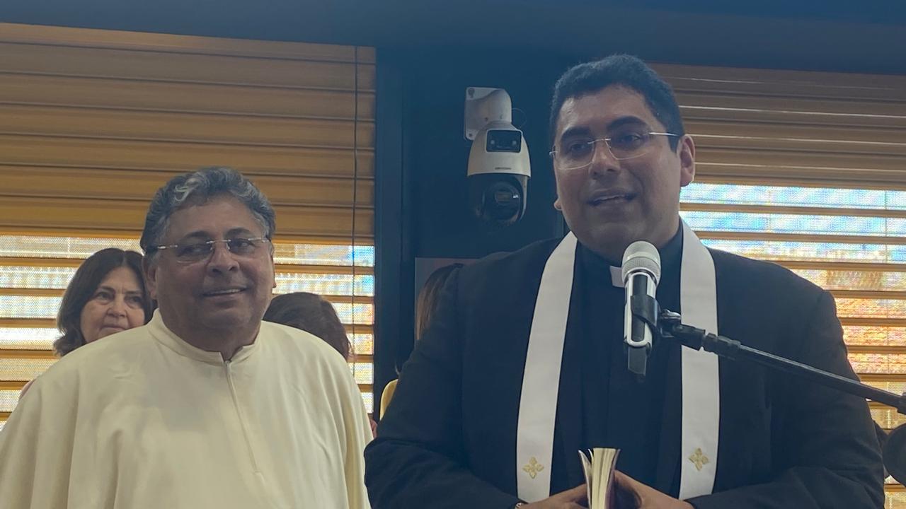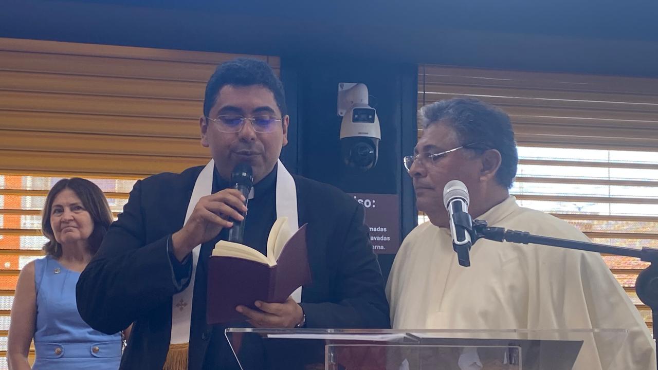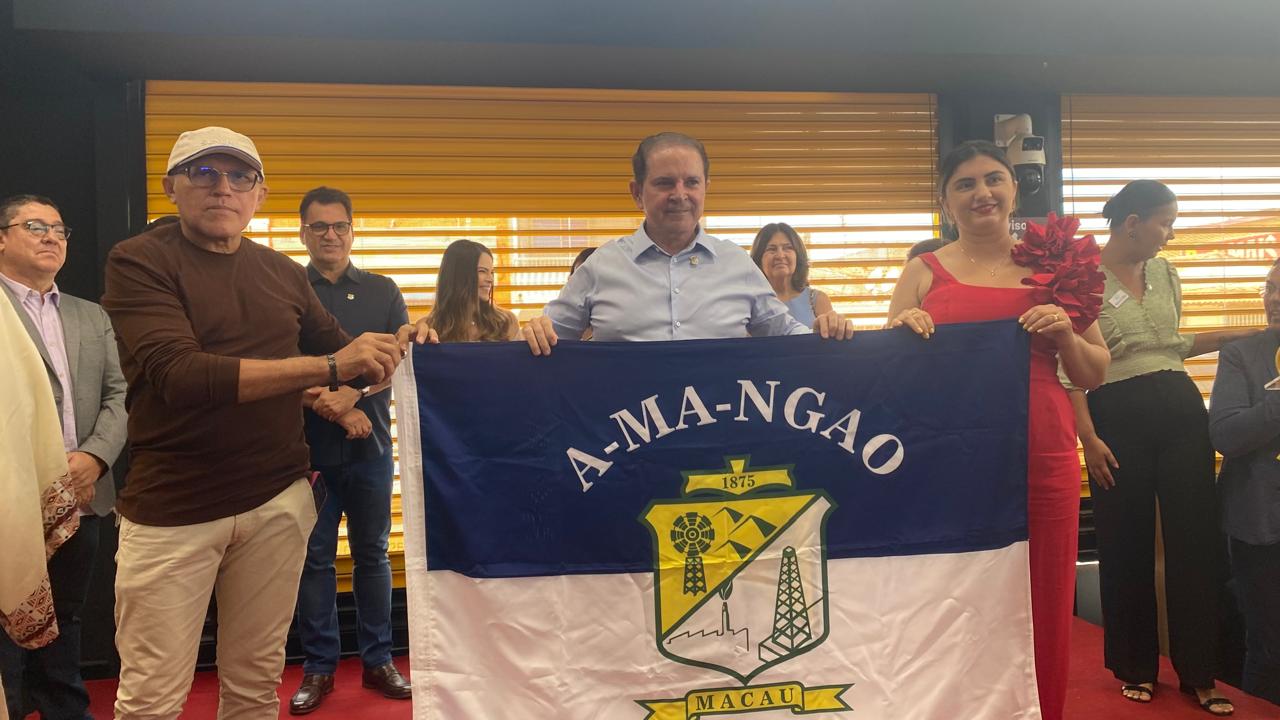 Ainda na manhã marcada por surpresas e emoção, o empresário Jorge Medeiros recebeu uma Moção de Aplausos, concedida pela Mesa Diretora da Câmara Municipal de Macau e entregue pela presidente da Casa, vereadora Ceição Lins. A bênção solene foi presidida pelos padres Antônio Murilo de Paiva e João Batista Nunes Filho.