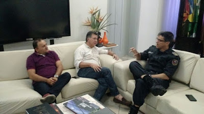 • O presidente Jairton Medeiros e o médico Eduardo Lemos, estiveram esta semana no Comando Geral da Policia Militar na capital do Estado. Estando lá conversaram com o Coronel PM Azevedo, o vereador reivindicou o aumento do quadro efetivo de policias para 1º CIPM, visando aumentar o aparato de segurança no município.