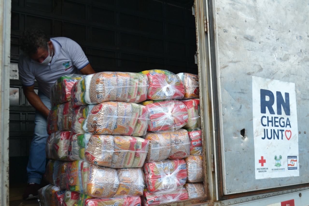 A ação faz parte do programa RN Chega Junto Contra a Fome, que distribuirá 35 mil cestas básicas, atendendo a população de maior vulnerabilidade e profissionais que foram diretamente afetados pelo isolamento social causado pela pandemia.
