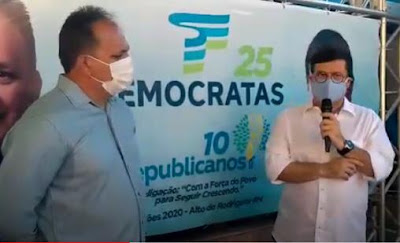 No município de Alto do Rodrigues, o prefeito e candidato à reeleição, Nixon Baracho (DEM), e seu vice Abelardo Neto (DEM), depois ter ter o deferimento da chapa puro sangue do DEM, agora comemoram o deferimento das candidaturas de prefeito e vice.