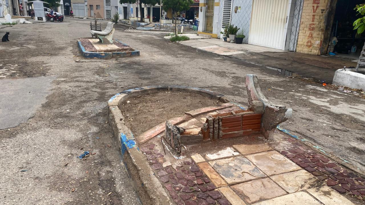 Populares e moradores da Rua João Crisóstomo cobram da gestão municipal a recuperação da pracinha da comunidade, que se encontra sem manutenção adequada e que está a muito tempo nessa situação.
