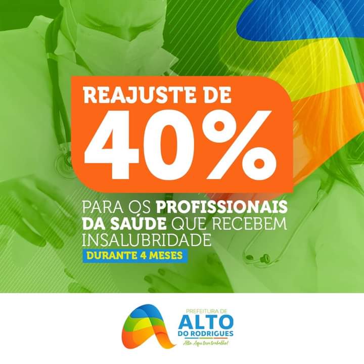 30 abril de 2021 Prefeitura de Alto do Rodrigues anunciou 40% de reajuste no salário dos servidores da saúde que enfrentam covid-19