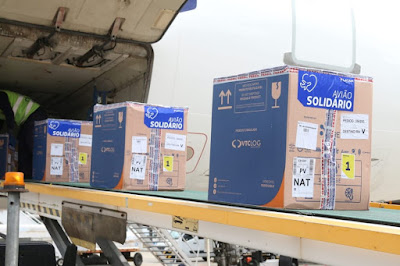 As doses chegaram ao estado em dois voos, sendo 38.610 da Pfizer e 24.200 da Coronavac/Butantan.