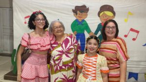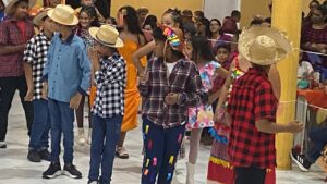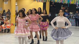 Teve quadrilha, dança junina com os alunos, comidas típicas, desfile da rainha, músicas lindas interpretadas pelos estudantes e até sorteio de um iPhone!
